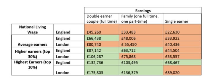 The table below from Shelter shows the different types of household who can (green) and those who can’t (orange) afford an average Starter Home. This just looks at whether their income is enough to secure a mortgage, not whether they have the deposit saved up. And it shows that London homes are out of reach to anyone but the very rich.